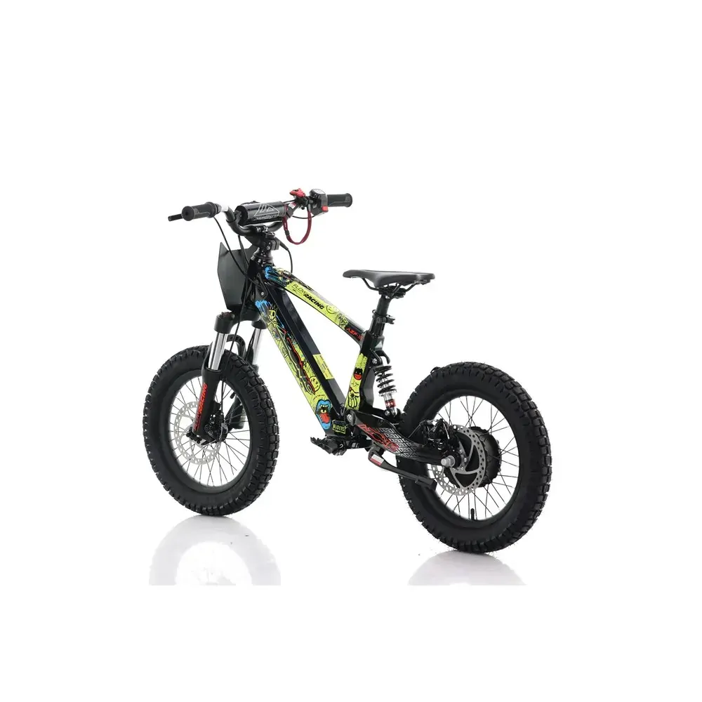 The Azonic Flow 16 boasts a 24V / 350W Brushless Hub Motor with Sine Wave Controller, three speed modes and a 5AH removable battery, as well as Adjustable Suspension and Mechanical Disc Brakes front and rear. It’s also covered with a 12-month warranty. With its ability to cater and adapt to both developing riders and skill levels, the Flow 16 is the ideal companion for a day in the dirt. The Flow 16 is here not just for a good time - but a great time!